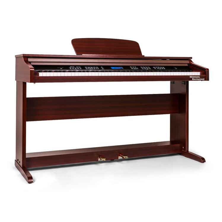 The Manuel Raymond 88 key piano has an automatic accompaniment with single and finger chords. The dual function permits two instrument voices to be heard with every keystroke, or the keyboard can be split so that two instruments can play together. The Manuel Raymond 88 key e-piano also features switchable effects such as reverb and chorus, and an integrated recording function for capturing song ideas.